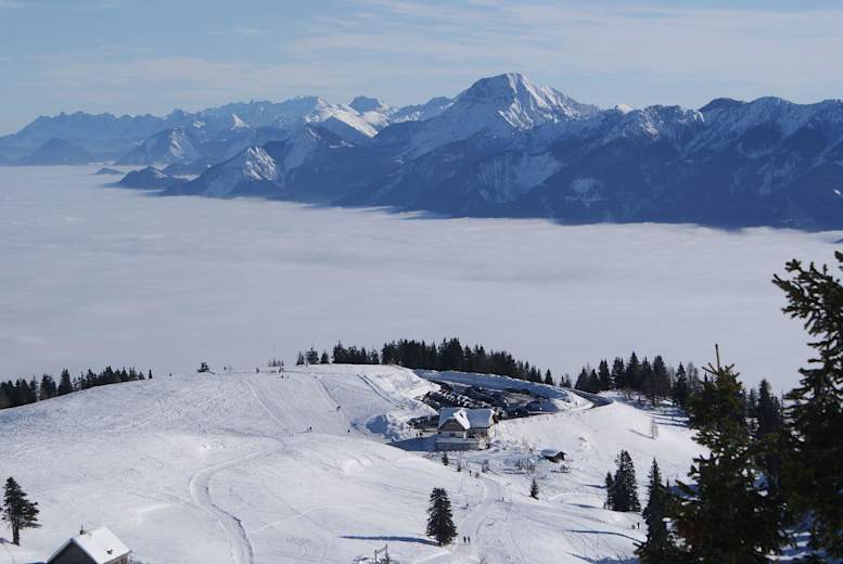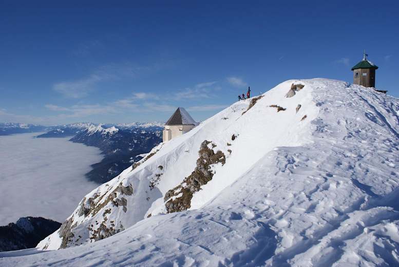 Von Heiligengeist auf den Zehnernock am Dobratsch (1.956 m): Das einstige Alpinskigebiet hat den Umstieg auf alternativen Wintersport geschafft. Im seit 2002 bestehenden Naturpark Dobratsch tummeln sich Tourengeher, Langläufer, Winterwanderer, Schlittenfahrer oder einfach Sonnenanbeter, die dem Nebel des Tales entfliehen. Die klassische Skitour auf die Villacher Alpe startet in Heiligengeist und führt zum Zehnernock. Alternativ geht es weiter zum Gipfel des Dobratsch, wo sich das neu renovierte Ludwig-Walter-Haus (Dobratsch Gipfelhaus) zum Einkehren anbietet. Lohnende Tour in den Gailtaler Alpen in Kärnten.