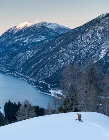 Sehr schöne Skitour beim Achensee im Karwendelgebirge in Tirol: Der unscheinbare Gröbner Hals (1.654 m) ist trotz des langen Forstweg-Zustieges durch das Unterautal nicht nur bei den Einheimischen sondern vor allem auch bei den bayrischen Nachbarn sehr beliebt. Nicht zu unrecht, wie man auf dieser landschaftlich sehr schönen und abwechslungsreichen Skitour feststellen wird.