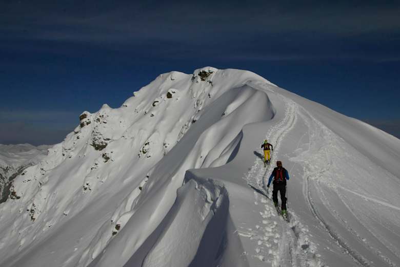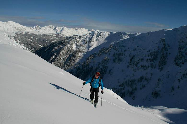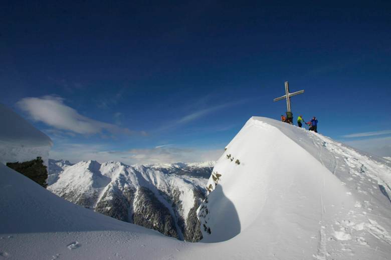 Der Gipfel des Spitzköfle bietet einen fantastischen Rundumblick auf die Große Kinigat, Porze, Reiterkarspitze, Lienzer Dolomiten, Großglockner uvm. Die Gipfelflanke ist ein wahrer Abfahrtsgenuss.