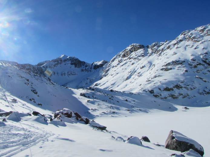 Der Abstieg und die Abfahrt folgen der gleichen Spur wie der Aufstieg.