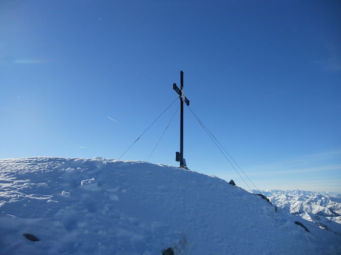 Wie Aufstieg, mit Varianten. Abfahrt über die Nordflanke zur Singsdorfer Alm erfordert sichere Verhältnisse.
