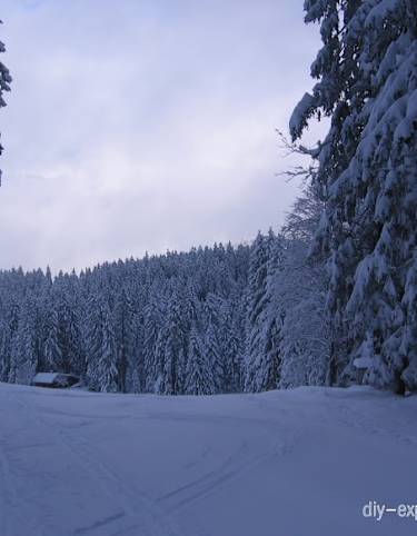 Kurz nach dem Tunnel links kleine Parkfläche, sonst weiter oben im Dorf bei Kehre/Schilift.