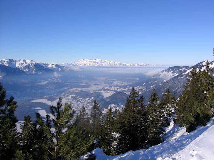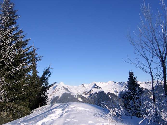Von der Bergstation aus geht es durch den Bergwald in manchmal etwas engen Serpentinen hinauf. Der Weg kann hin und wieder vereist sein, was ein Vorwärtskommen etwas mühsam gestaltet. Am besten steuert man die Lawinenverbauungen an, die sich in der Nähe des Nitzkopfs auf knapp 1.700 m befinden.