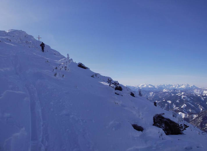 Aufstieg am Grat zur Stumpfmauer, Abfahrt ev. über die freien Hänge rechts Foto: Willi H.