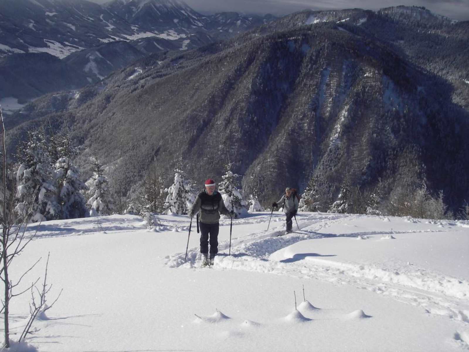 Mittelschwierige Skitour auf den Friesling (1.340 m) im Mostviertel: Die schöne Route mit teils steilem Aufstieg ist stark bewaldet und nur bei sehr guter Schneelage ein Genuss.
