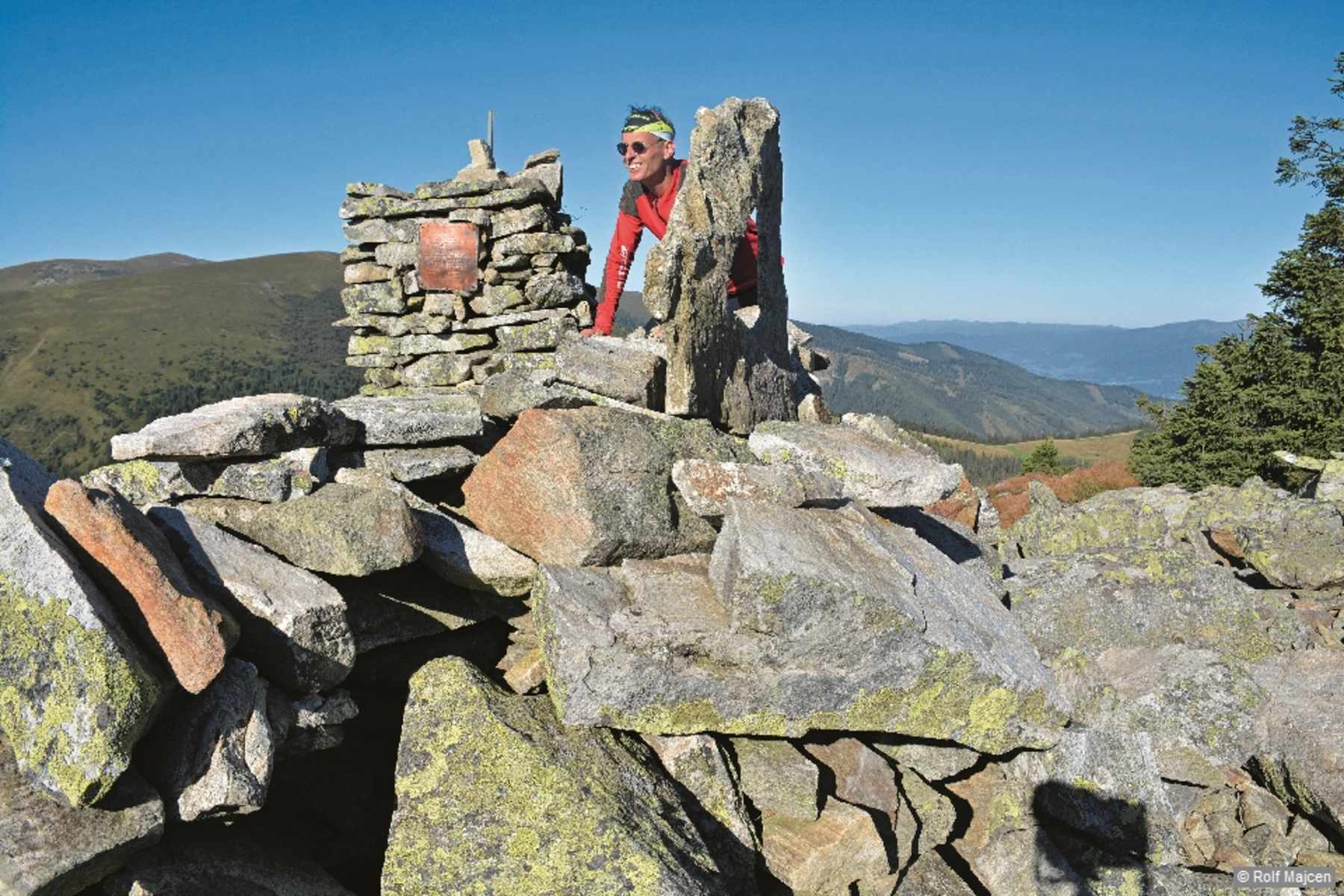 Markanter Steinwall beim Abstieg vom Eiblkogel. Foto: Rolf Majcen, Bergverlag Rother GmbH