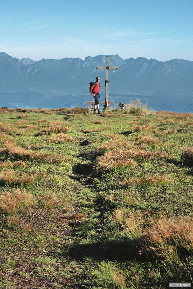 Eiblkogel-Gipfelkreuz mit Blick zum Eisenerzer Reichenstein. Foto: Rolf Majcen, Bergverlag Rother GmbH