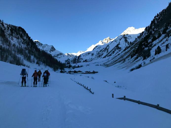 Der Skitourenzustieg zur Franz Senn Hütte führt ausgehend vom Parkplatz Seduck im Oberbergtal im Stubaital (Tirol), in den Stubaier Alpen aufwärts. Die Tour ist mit und 3 h relativ lange. Ab der Oberissalm bietet der Hüttenwirt einen Gepäcktransport mit der Materialseilbahn der Hütte an.