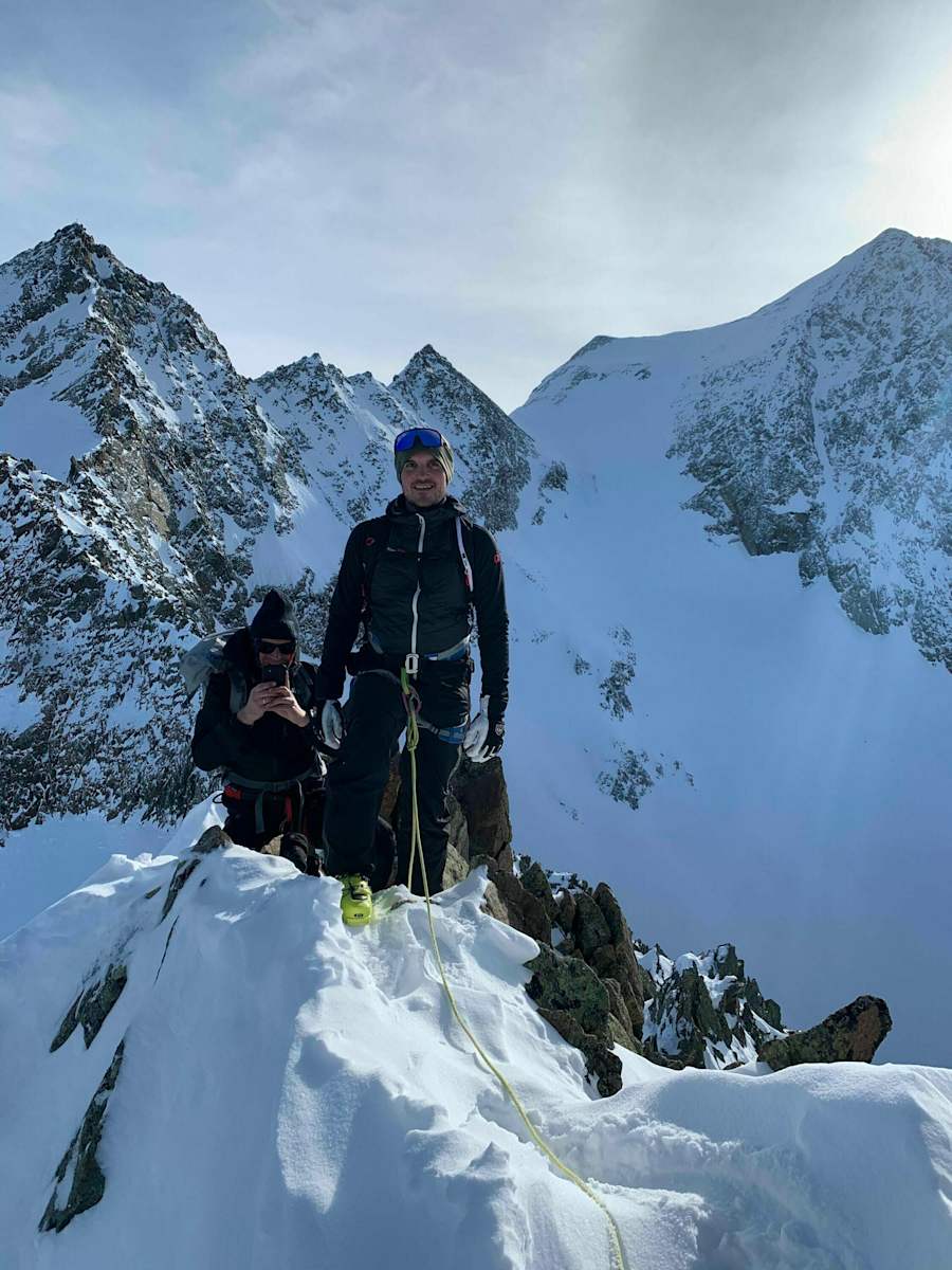 - Vom Skidepot über das Fixseil zur Kräulscharte - Foto: Stephan Mitter  - Am Gipfel der Inneren Sommerwand, heute ohne den herrlichen Ausblick. - Foto: Stephan Mitter  - Aufstieg in Richtung Gschwezgrat mit Blick zurück zur Franz-Senn-Hütte. - Foto: Stephan Mitter  - Über den ausgesetzten Grat zum Gipfel, mit Blick zur Östlichen Seespitze - Foto: Stephan Mitter - Bildergalerie (4)