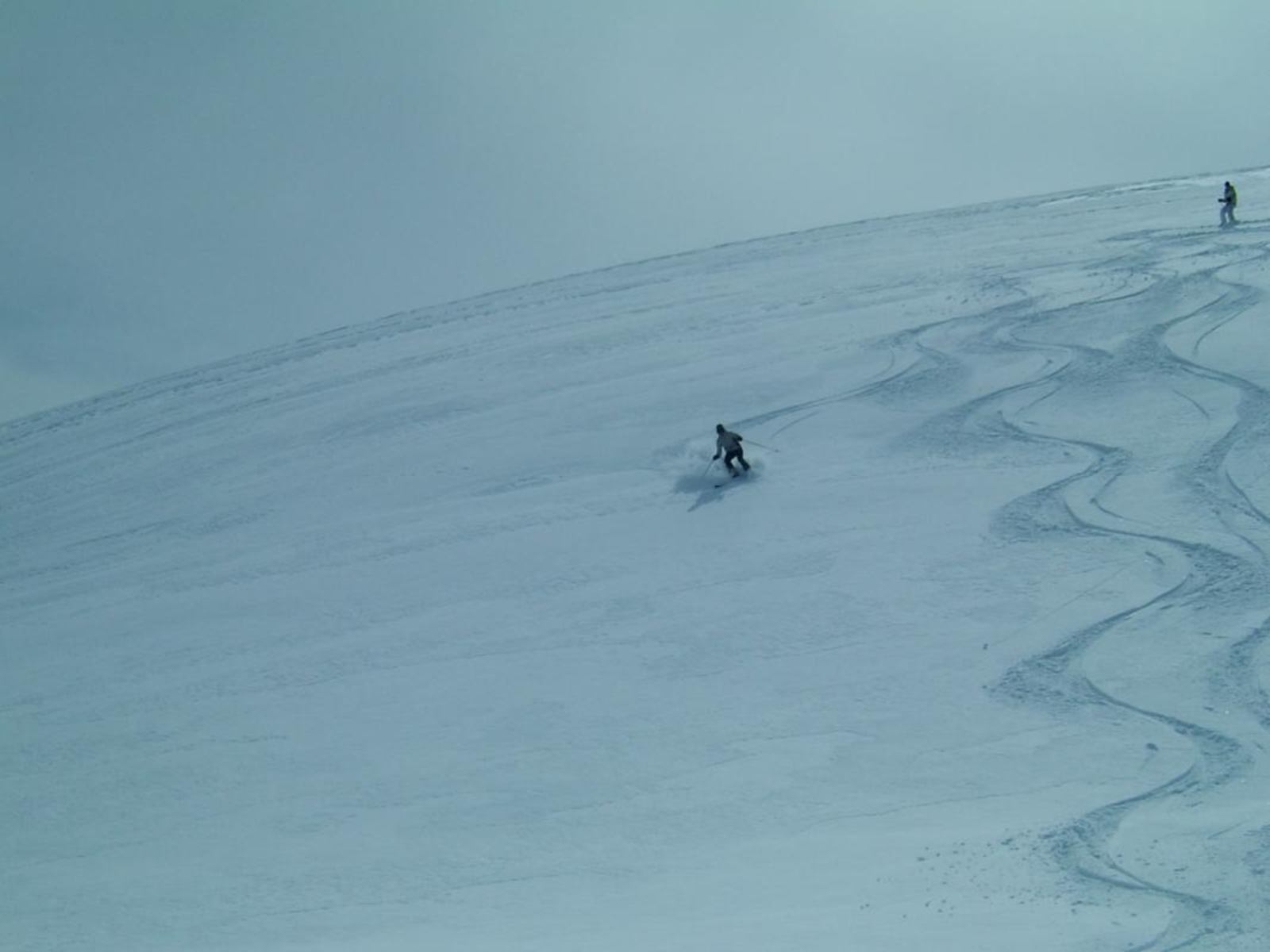 Die Abfahrt führt vom Gipfel über den Bergrücken zur Grünleitenscharte und dann durch tolle Tiefschneehänge rechts der Skipiste bis zur Saueregghütte. Man fährt weiter ins Tal über die Skipiste oder engere Tiefschneerinnen zum Ausgangspunkt zurück.