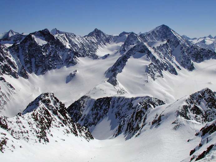 Sehr beliebte und anspruchsvolle Skitour auf den Hohen Seblaskogel (3.235 m) in den Stubaier Alpen Tirols. Vom Gipfel aus hat man fabelhaften Weitblick auf die umliegende Gipfelwelt des Karwendel und der Stubaier Alpen.