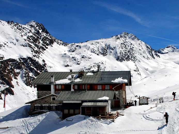 Die Pforzheimer Hütte (2.308 m) ist ein lohnendes Tourenziel und Stützpunkt für viele traumhafte Skitouren in den Stubaier Alpen in Tirol. Eine leichte Skitour, die auch für Anfänger gut geeignet ist.