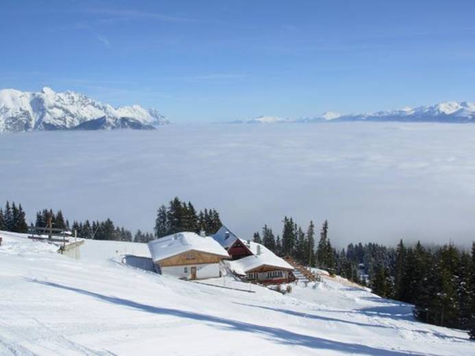 Wer sich den Rummel auf den Pisten ersparen möchte, kann auch vom Ortsteil Kammerland über die freien Wiesen zu den Egghöfen und weiter nach Stiglreith aufsteigen.