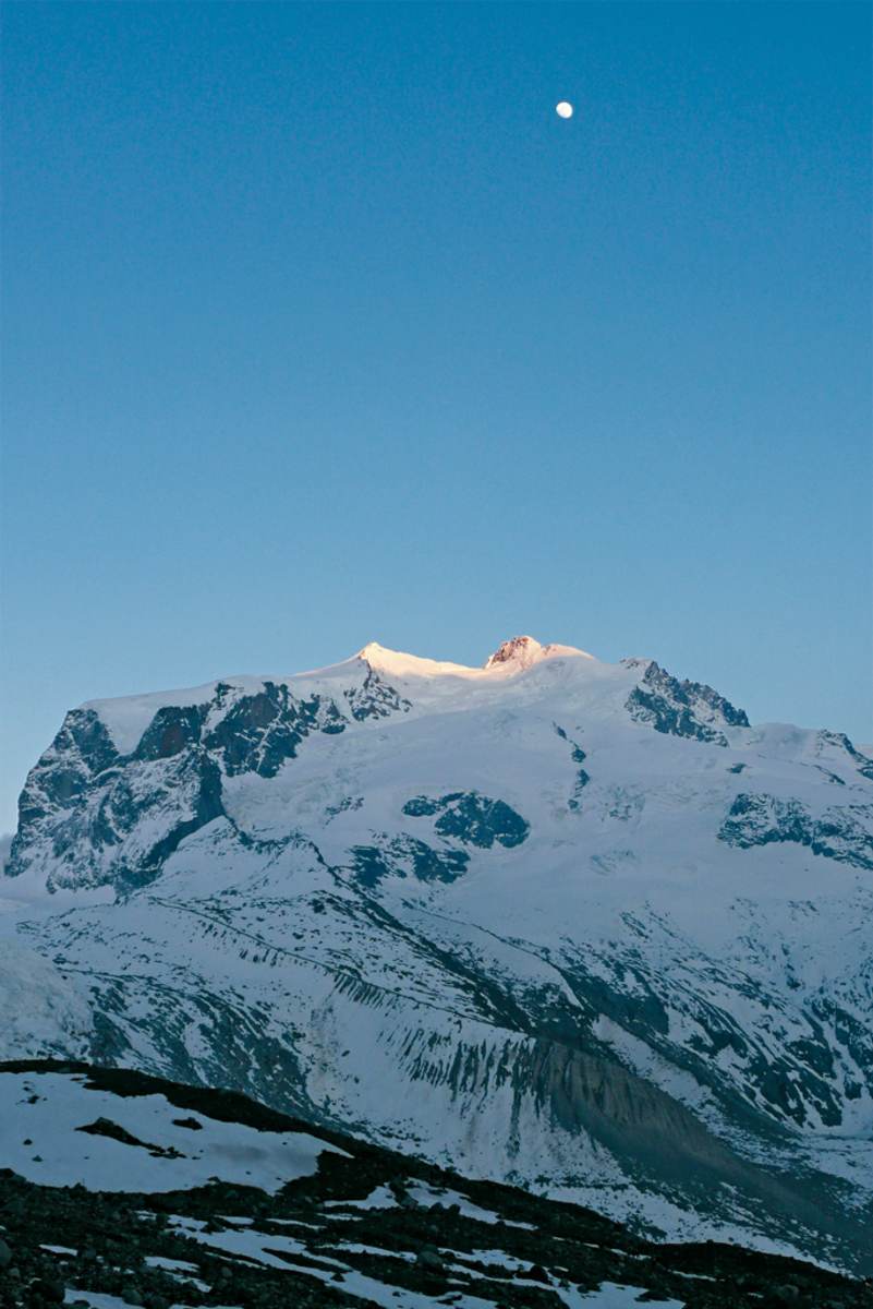 Das letzte Abendlicht auf Nordend (links) und Dufourspitze. Foto: Daniel Häußinger und Michael Waeber