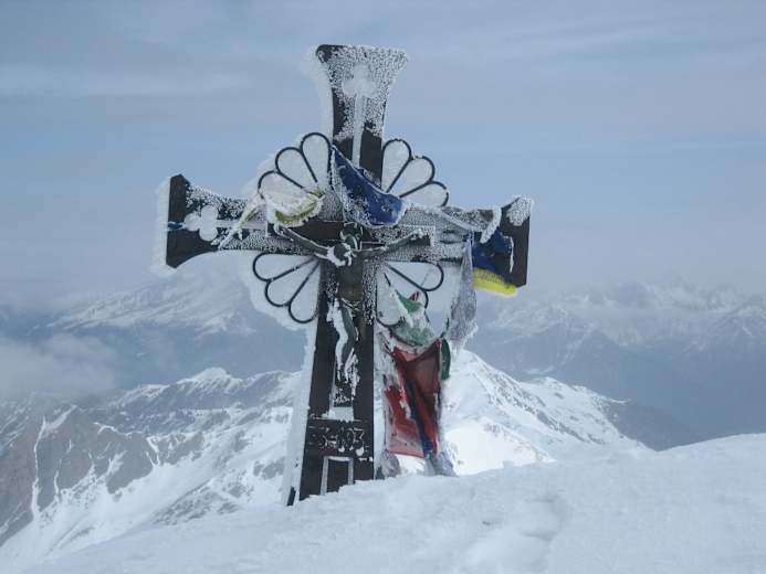 Der weitere Anstieg richtet sich nach den objektiven Verhältnissen und nach der Schneelage. Der Aufstieg zum 2.705 m hohen Gipfel des Weißhorns erfolgt drahtseilgesichert und in Kletterei im I. Grad.