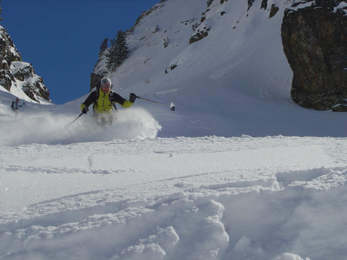 Abfahrt von der Scharte über die Aufstiegsroute.