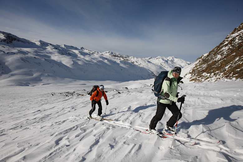 Großartige Gletscherskitour auf die Weißkugel (3.739 m), den zweithöchsten Gipfel der Ötztaler Alpen. Der hier beschriebene Aufstieg beginnt auf der Südtiroler Seite, bei Kurzras im hintersten Schnalstal. Am Gipfel öffnet sich ein grandioses Panorama auf die umliegende Gletscherwelt.