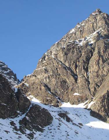 Abfahrtsvariante: Bei Firn kann man vom Gipfel direkt über den steilen Westhang abfahren.