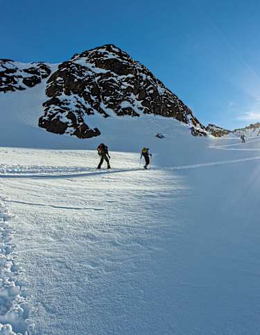 Die Abfahrt erfolgt entlang der Aufstiegsroute.