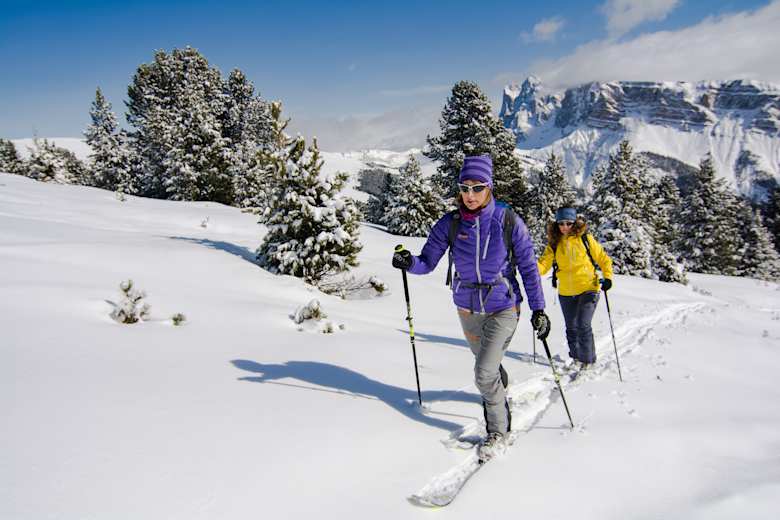 Skitour Innerraschötz mit Blick auf die Seceda und Fermeda Foto: valgardena.it