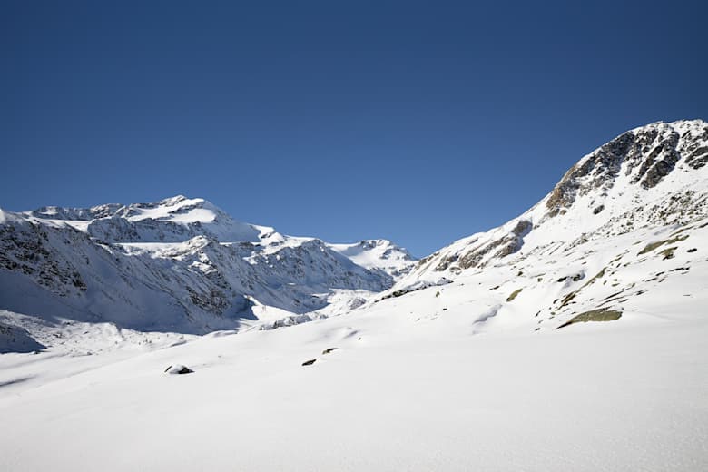 Der Cevedale ist der höchste Berg Südtirols, den man mit Ski bis zum Gipfel erreichen kann (unter normalen Schneebedingungen). Außerdem bietet er auch die längste Abfahrt dieser Region. Eine einfache aber intensive Gletscherroute, die bergauf beeindruckt, hinab jedoch ein wenig durch ebene Abschnitte, die von eisigem und glattem Schnee bedeckt sind, unterbrochen ist. Ein echter Skitourenklassiker in den Ortler-Alpen Südtirols.