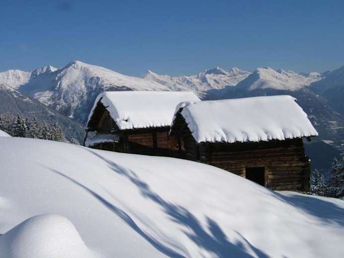 Bei einer weiteren Almhütte beginnt eine lange, flache Querung über den Forstweg ins Almgebiet der "Klenitzen". Vorbei an malerischen Almhütten erreicht man schließlich den etwas steileren Gipfelhang. Man geht zunächst mit Ski rechts am Grat höher, die letzten Meter werden üblicherweise zu Fuß zurückgelegt.