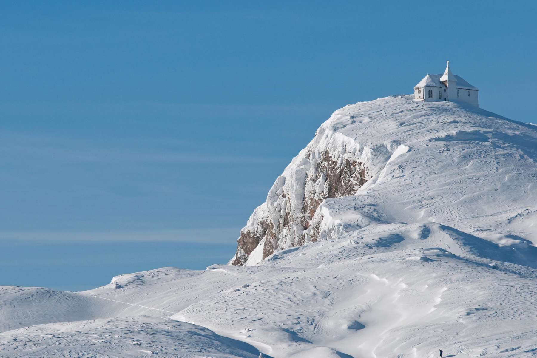 Nach der Ankunft beim Gipfelhaus kann man entweder sofort einkehren oder noch den kurzen Anstieg zur Kirche oder zur Wetterstation auf sich nehmen. Von hier ist auch schon das Gipfelkreuz zu sehen.