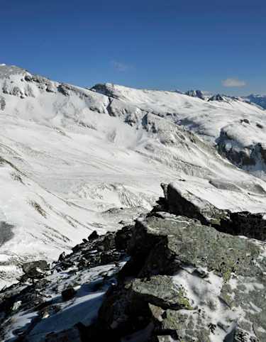 Will man bis zum Gipfel aufsteigen, muss man über einen schmalen Grat, der wegen Überwechtung meist mit Vorsicht zu begehen ist, gehen.