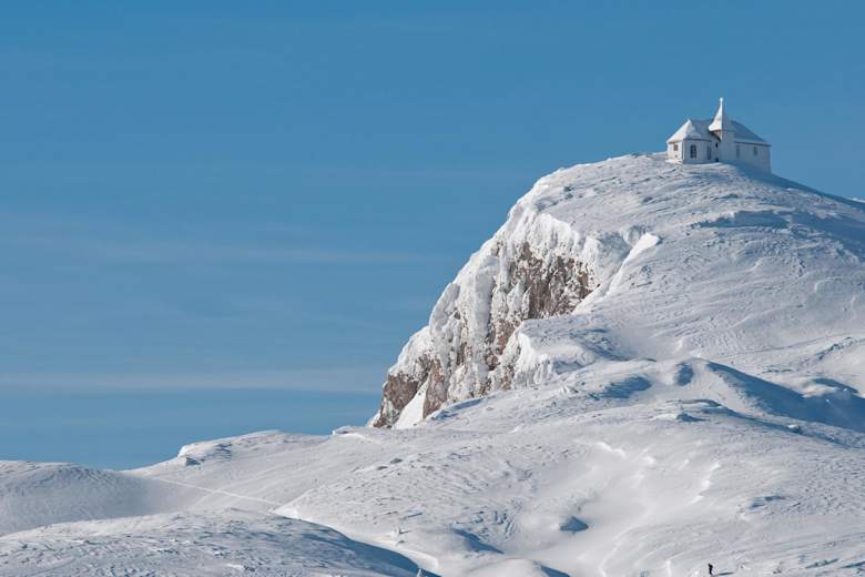 Diese leichte Skitour führt über einen sonnigen, präparierten Panoramaweg bis auf den Gipfel des Dobratsch – einen beliebten Aussichtsberg in Kärnten.