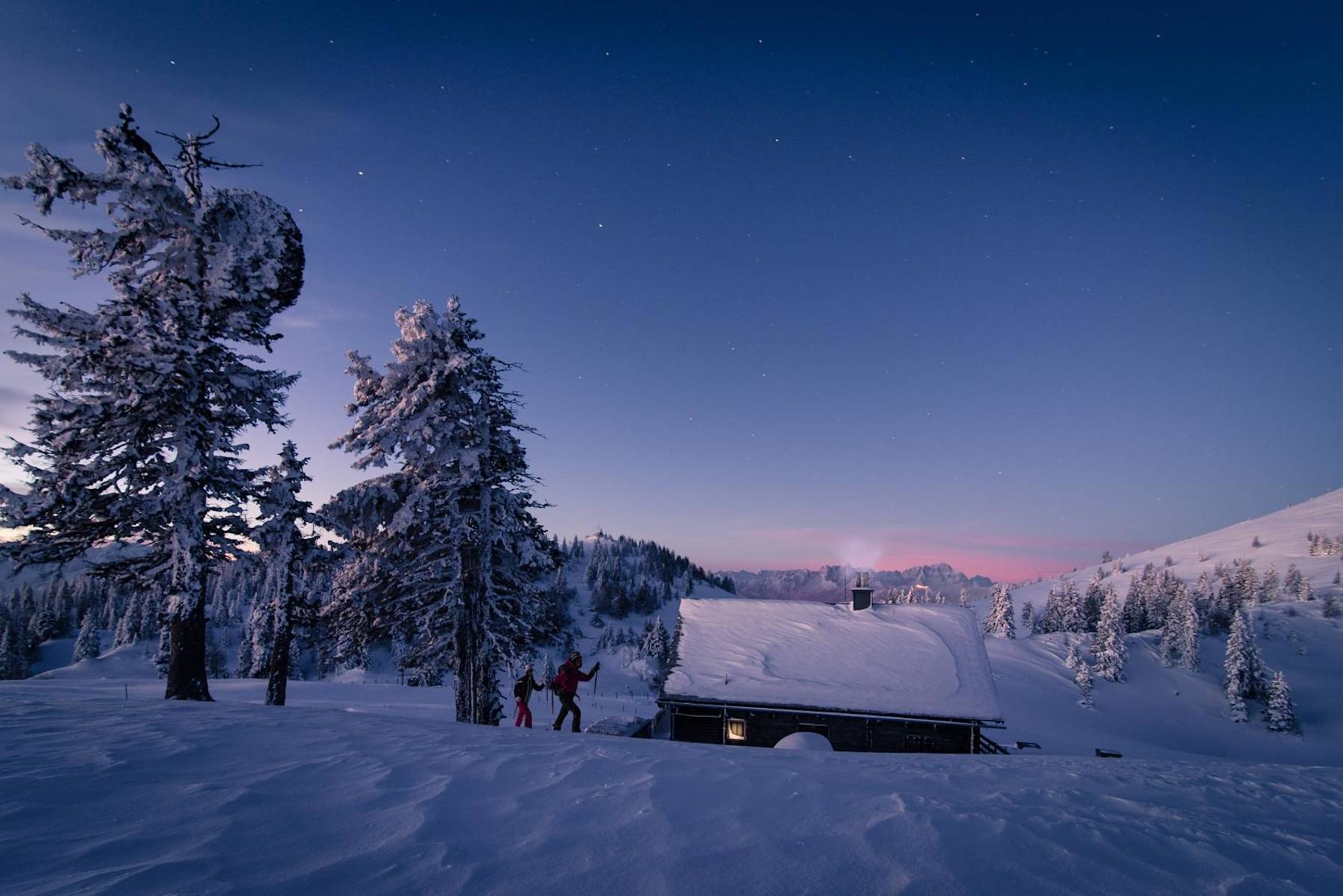 Die Schmankerlstube „Rosstratten“ eignet sich zur Einkehr. Hier gibt es nicht nur gutes Essen, sondern auch die Möglichkeit weitere Touren mit den Tourenski, mit den Schneeschuhen oder der Rodel zu bestreiten. Auch zum Snow-Kiten bietet sich hier ein weitläufiges Gelände.