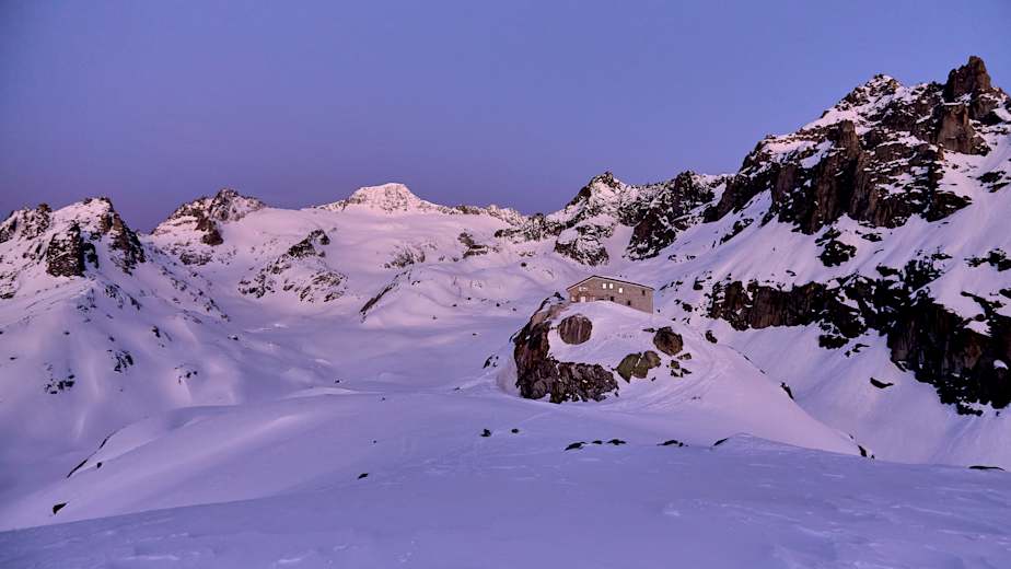 Einfache Skitour von Realp über den Schafberg zur Albert-Heim Hütte auf 2.542 m in den Urner Alpen. Der anfangs flache Weg führt entlang der Furkapassstraße bis zum Hotel Galenstock. Der weitere Aufstieg verläuft abwechslungsreich im kupierten Geländer auf den Schafberg und weiter zur urigen Berghütte im Kanton Uri.