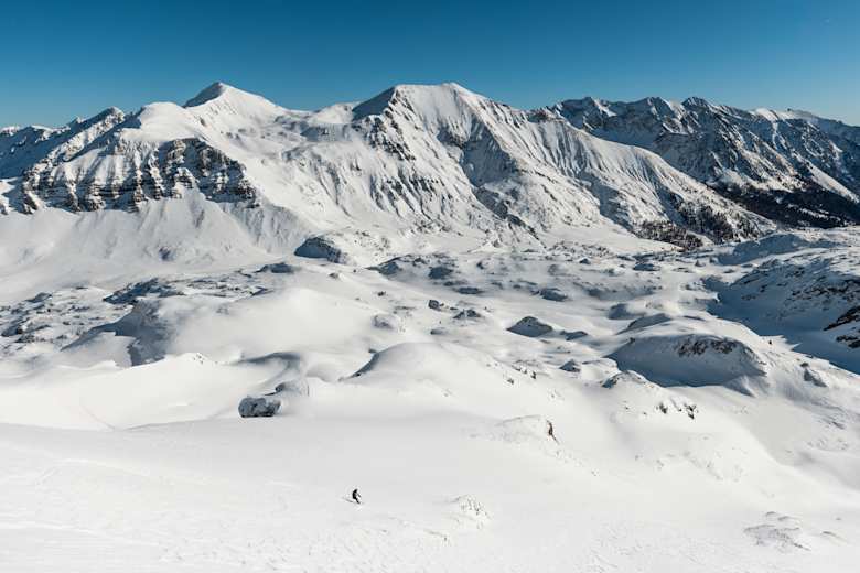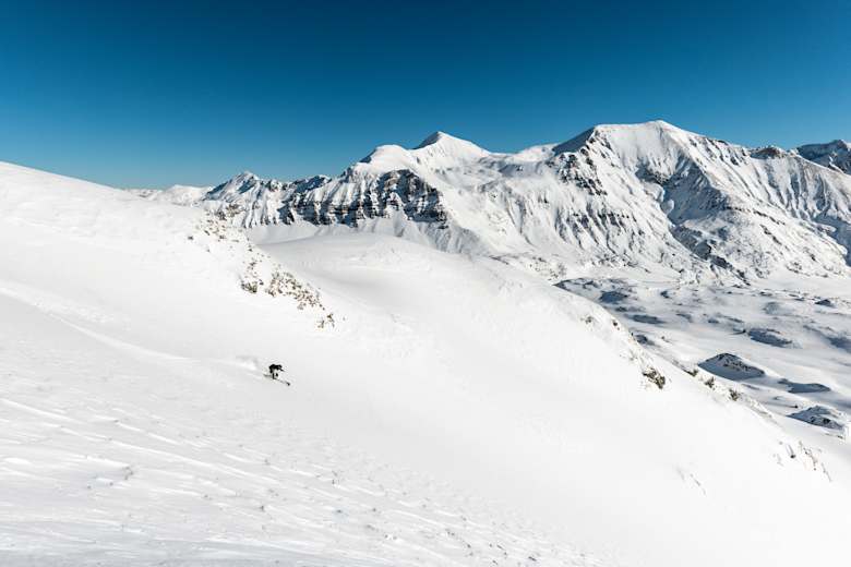 Am Gipfel des Roßkopfs merkt man die Nähe zum Skigebiet schon nicht mehr: In alle Richtungen schießen die Gipfel der Radstädter Tauern empor, unberührte Hänge warten auf puren Abfahrtsgenuss. Wie etwa auf der ostseitigen Abfahrt vom Roßkopf in Richtung Oberhüttensattel und Kalkspitze. Im Frühling hat man hier gute Chancen auf eine allerfeinste Firnabfahrt.