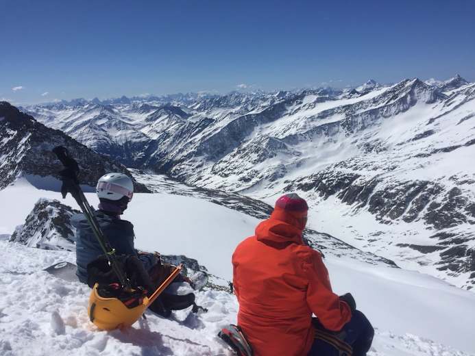 Entspannter ist die Tour jedoch in zwei Etappen, mit einer Übernachtung auf der Essener-Rostocker Hütte. Der Aufstieg auf den Großen Geiger ist in 4 Stunden gut machbar und es bleibt noch Zeit für eine ausgiebige Gipfelrast und die lange Genussabfahrt zurück zur Hütte. Im Frühjahr empfiehlt sich der Start vom Gipfel kurz nach Mittag für guten Firn.
