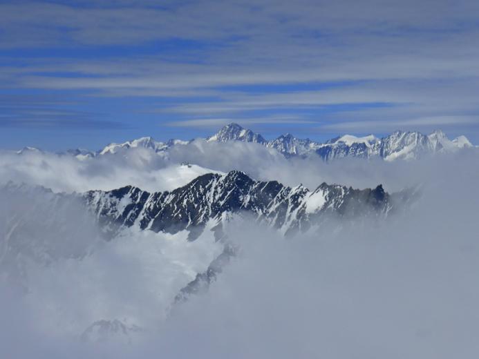 An der Nordflanke des Gwächtenhorns dreht man südwärts und erreicht ein weites Gletscherplateau, über dem man bereits den etwas steileren Gipfelhang des Sustenhorns einsehen kann.