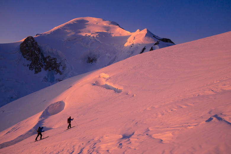 Für die Tour sollte man idealerweise mindestens drei Tage einplanen, um ggf. günstigere Wetterfenster zu nutzen. Die Besteigung des Mont Blanc wird trotz der Höhe häufig unterschätzt. Zur Akklimatisierung empfiehlt sich vorab die ein oder andere Tour über 4.000 m, da die Höhe jenseits 4.500 m oft auch erfahreneren Alpinisten zu schaffen macht.