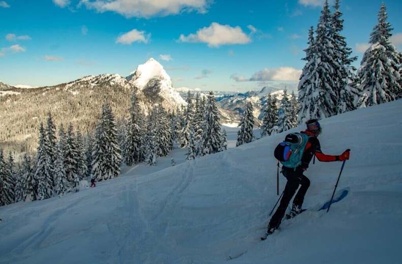 Der Gscheideggkogel, 1.788 m, liegt zwischen den etwas höheren Bergen Leobner und Lugauer, die zu den beliebtesten Gipfeln für Tourengeher in den Ennstaler Alpen gehören. Aber auch die leichte Skitour auf den Gscheideggkogel im Nationalpark Gesäuse hat viele Besonderheiten zu bieten - etwa die Ebner- oder Teufelsklamm, die insgesamt abwechslungsreiche Streckenführung und den rund 200 Höhenmeter umfassenden Gipfelhang samt schöner Aussicht von ganz oben. Ausgangspunkt ist der Parkplatz am Ende des Johnsbachtales im Gesäuse.