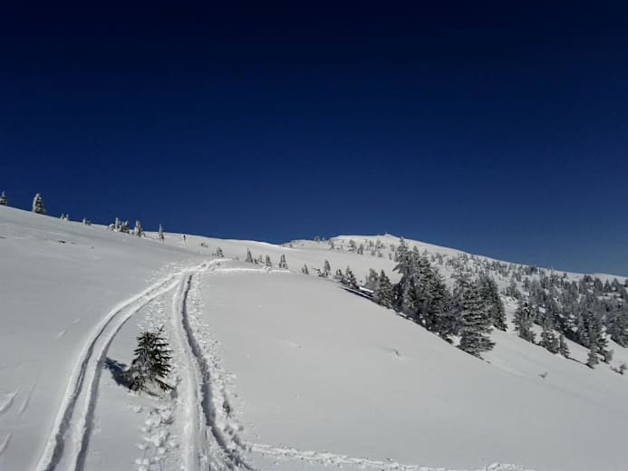 Die Abfahrt erfolgt entlang der Aufstiegsspur.