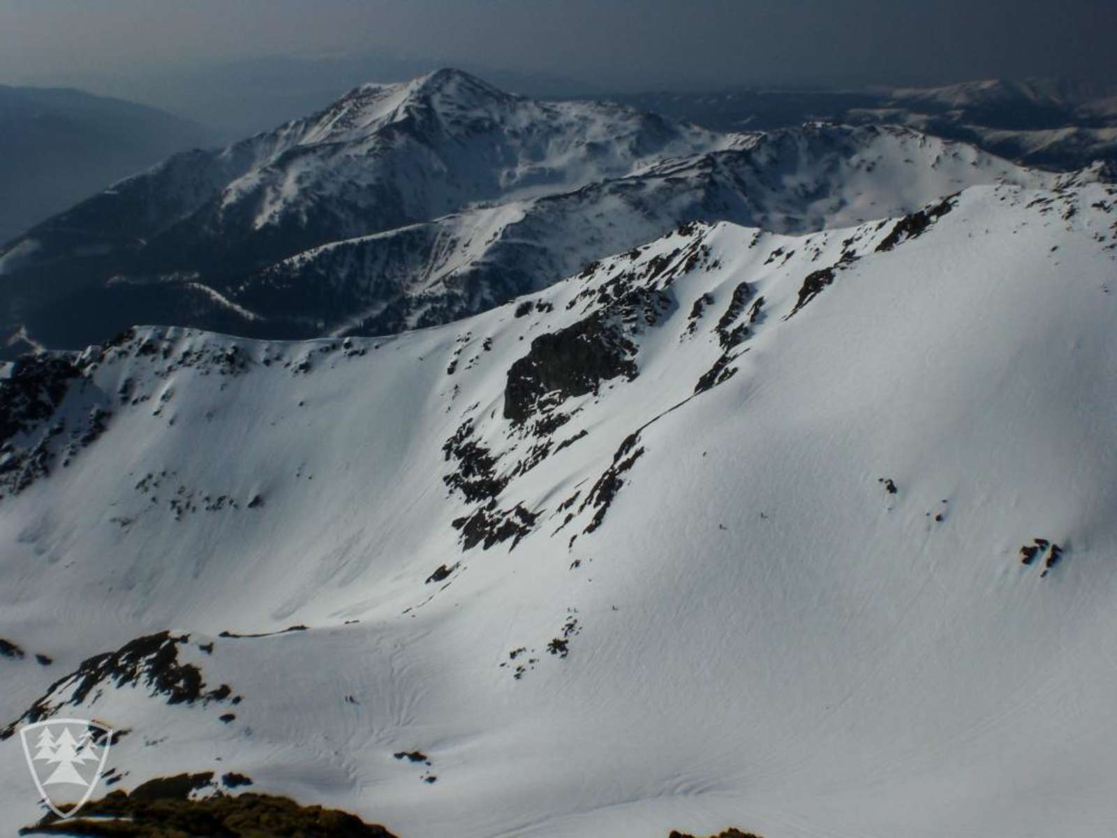 Ausblick vom Gr. Bösenstein, links sieht man den abgeblasenen Einstieg (Einsattelung) zur Roten Rinne Foto: Rene Sendlhofer