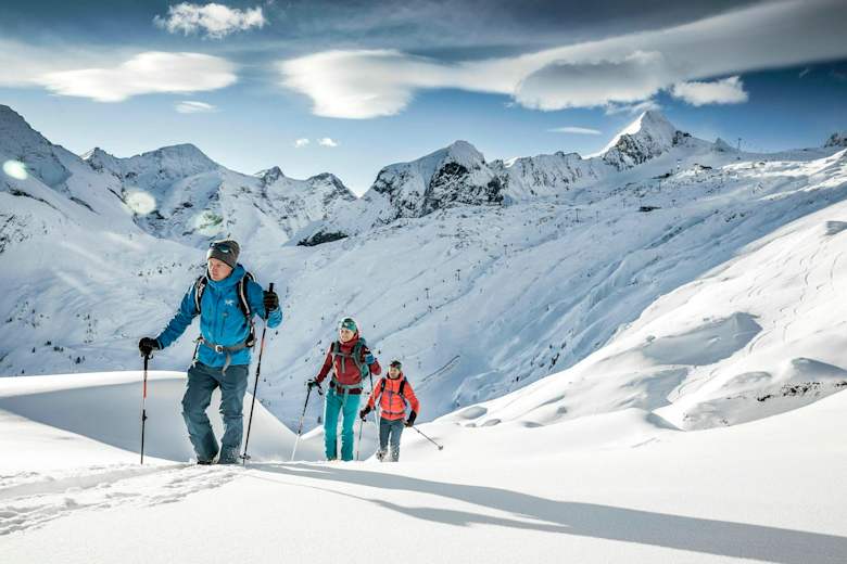 Mit der Bergbahn Kaprun geht es hinauf auf 1.976 m auf den Langwiedboden. Durch die Höhe des Ausgangspunktes ist die Tour meist auch schon im Frühwinter gut zu begehen, da früh gefallener Schnee sich hier meist gut hält.
