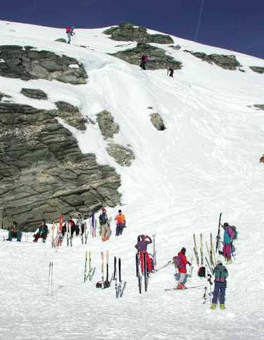 Von der Leglerhütte (2.273 m) in südöstlicher Richtung am Fuße des Unter Chärpf entlang. Weiter in einem großen Linksbogen zur Chärpfscharte, wo meist das Skidepot angelegt wird. Von dort in nordöstlicher Richtung über die Stufe und westwärts auf dem Rücken zum Gipfel.