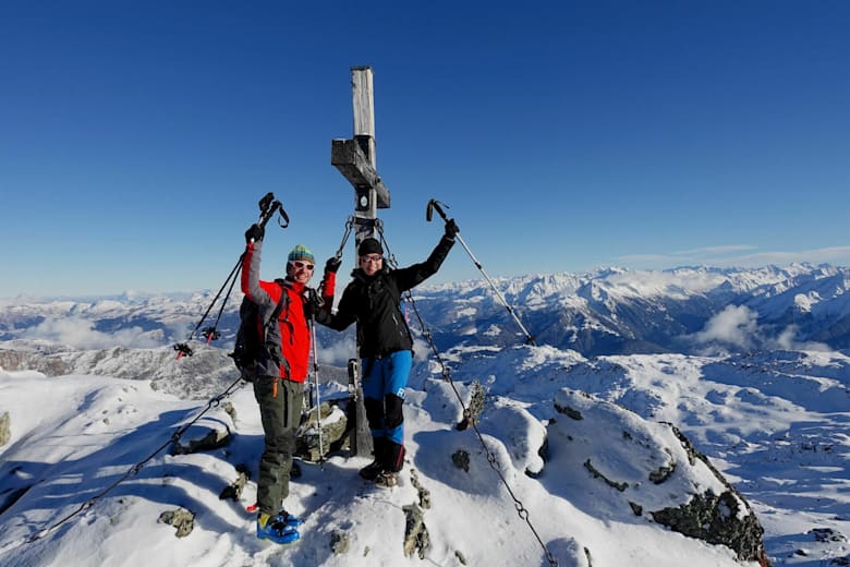 Der zweite Tag der Skihochtour durch die Tuxer Alpen führt von der Rastkogelhütte zur Weidener Hütte. Gleich zwei Gipfel werden an diesem Tag erstiegen - der Rastkogel mit 2.762 m und die Halslspitze mit 2.574 m.