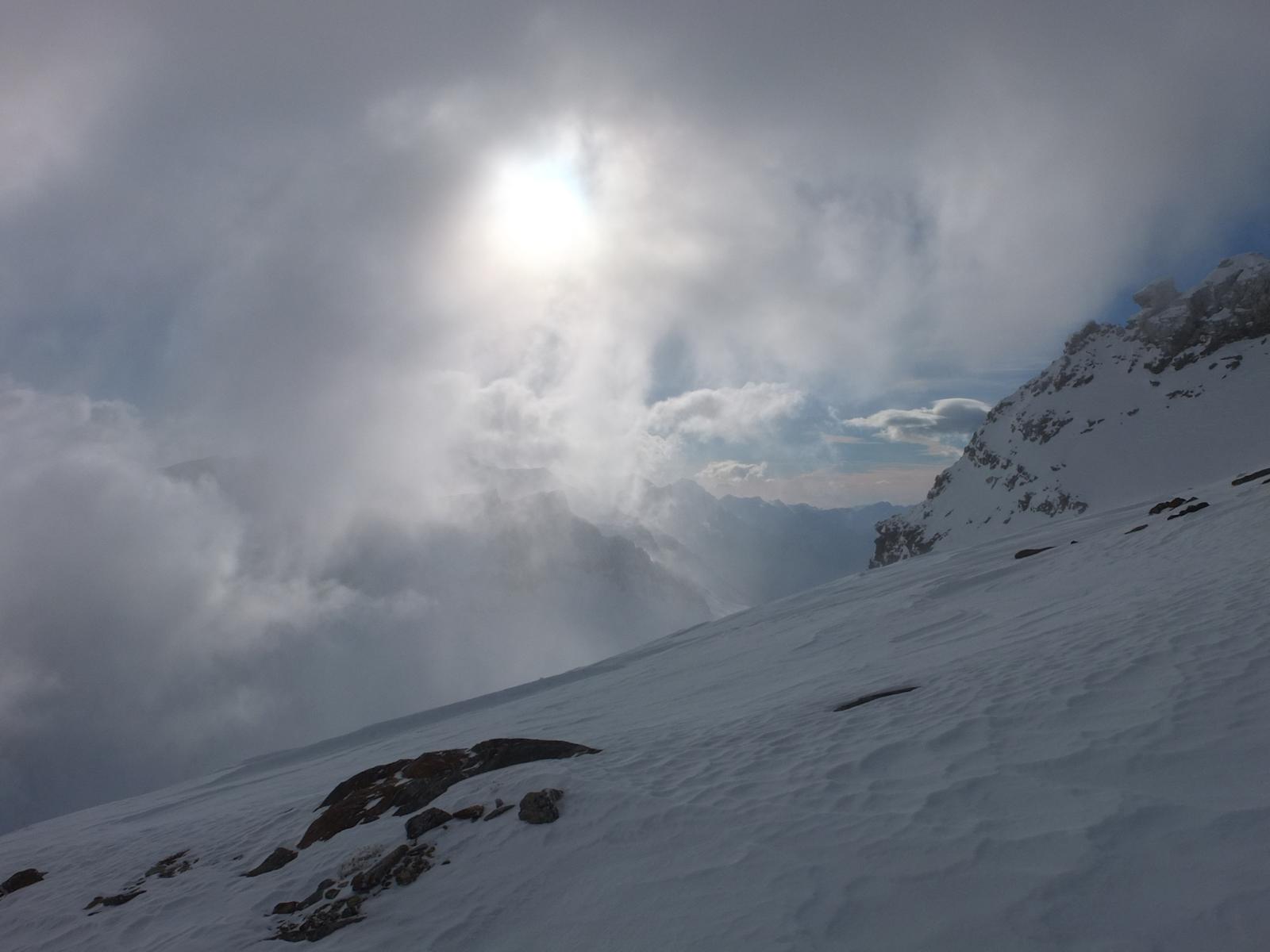 Abwechslungsreiche Adula-Erfahrung im Kanton Graubünden: Die Skitour auf das Chilchalphorn (3.039 m) ist recht sicher und deshalb auch gut für Schlechtwetter geeignet. Völlig zu recht eine sehr beliebte Tour.