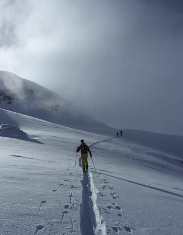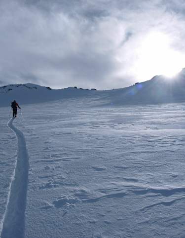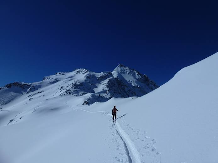 Die Abfahrt erfolgt wieder vom Skidepot und folgt dem Aufstieg.