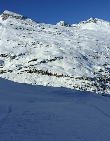 Diese Tour von Splügen aus ist eine schöne Hochwinter-Tour. Die Hänge sind Süd bzw. Ost-orientiert und bis auf den allerletzten Part recht sicher. Wenn also in der Umgebung nichts geht, kann das Schollenhorn eine gute Alternative sein.