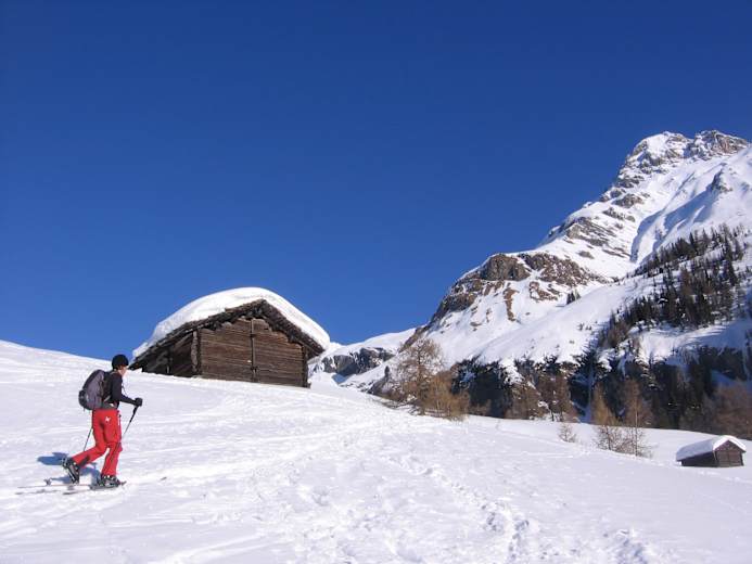 Man startet am großen Parkplatz am Rhein und macht die ersten Meter zu Fuß durch die Altstadt. Sobald man diese hinter sich gelassen hat, quert man stetig ansteigend die freie Wiese über der kleinen Stadt, bis man auf eine breitere Alpstraße stößt. An deren nordöstlichem Rand erklettert man den freien Hang bis Gadastatt, kreuzt noch einmal die Straße bevor man endgültig dem langen Tal oberhalb des Stutzbachs nach Norden folgt. Die imposanten Wände unter dem Teurihorn bilden auf diesem Abschnitt eine imposante Kulisse.