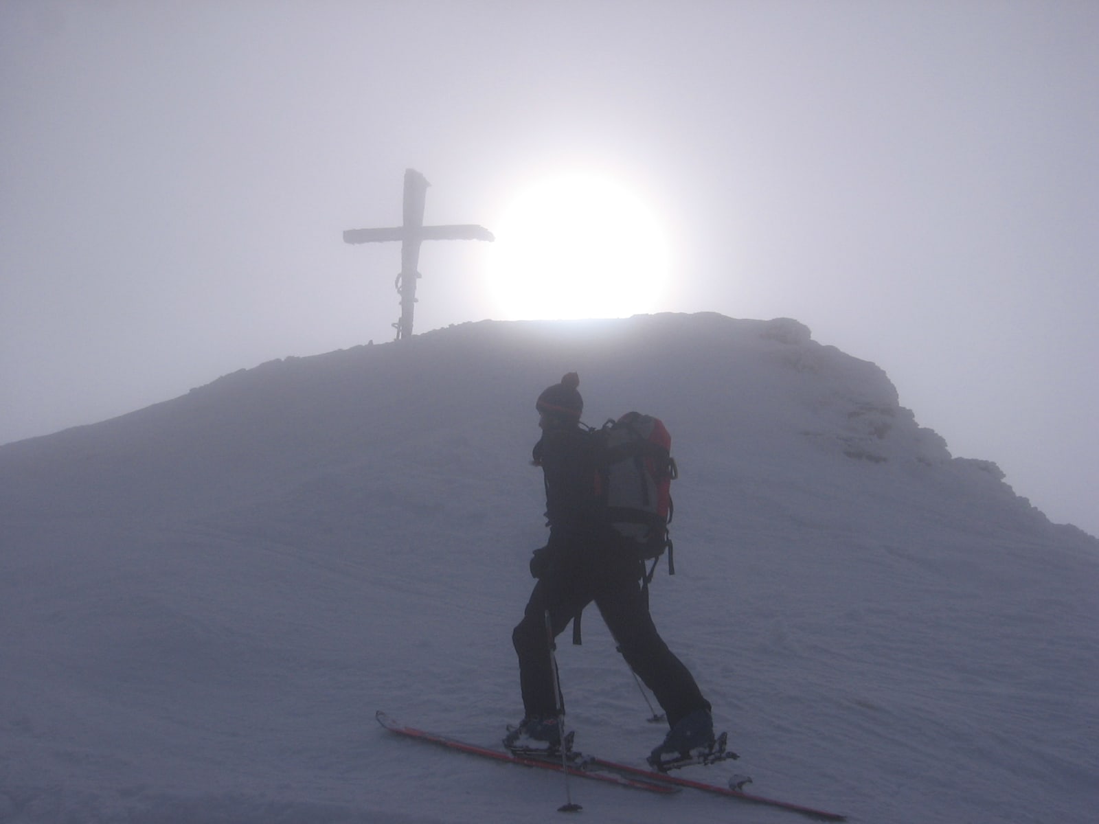 Auf freien Hängen folgt man diesem Rücken gegen Süden und bis zum Kamor hinauf. Hier beenden die meisten ihre Skitour. Der Übergang über den Kastensattel sollte einigermaßen sichere Verhältnisse haben, ansonsten ist der Aufstieg zum Hohen Kasten kein Problem.