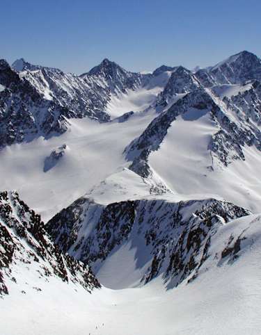 Piz Bernina (4.048 m) - der einzige Viertausender der Ostalpen: Viel Kondition und Erfahrung in Hochtouren sind auf dieser Skihochtour in den Bernina-Alpen im Kanton Graubünden gefragt. Wer auch noch alpinistisch unerschrocken ist, der wird an dieser Tour seine größte Freude haben.