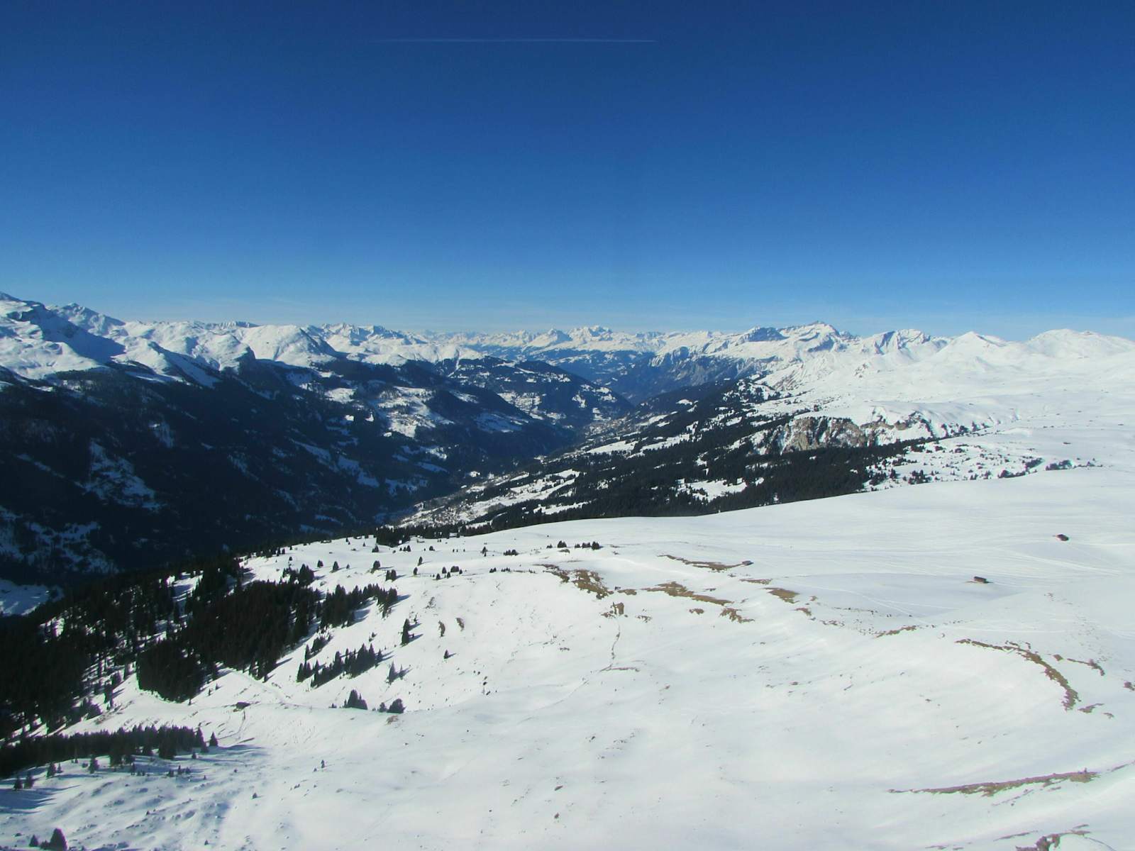 Das Mattjisch Horn (2.461 m) in den Plessur Alpen Graubündens ist eine schöne Skitour - besonders nach einem ausgedehnten Schneefall. Die Hänge weisen meist gegen Süden und sollten deshalb am besten am frühen Vormittag befahren werden. Wer Panorama, Geselligkeit und eine schöne Abfahrt kombinieren möchte, ist hier genau richtig. Die Tour ist für Genießer, Anfänger wie auch für zwischendurch eine interessante Option und in der Regel recht sicher.