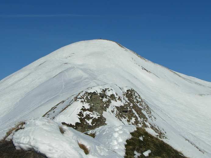 Erst im letzten Viertel des Aufstieges entdeckt man zu seiner Rechten eine kleine Einsattelung im langen Grat von der Blackter Flüe, die man gerne besteigt. Von dort fällt die Steigung etwas milder aus und man erreicht völlig unkompliziert den Gipfel.