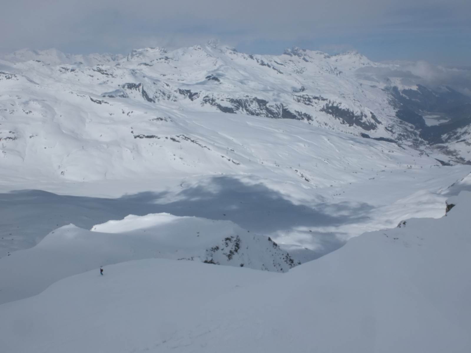 Die Abfahrt, die dem Aufstieg in der Routenführung folgt, ist bei entsprechenden Verhältnissen eine Traumabfahrt - bis zum flachen Tälli. Von dort heißt es an manchen Stellen anschieben, bis die Skipiste erreicht ist.